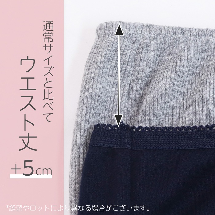 ウエストまでの身丈長め設計でおなかをすっぽり包んで冷えを抑えます