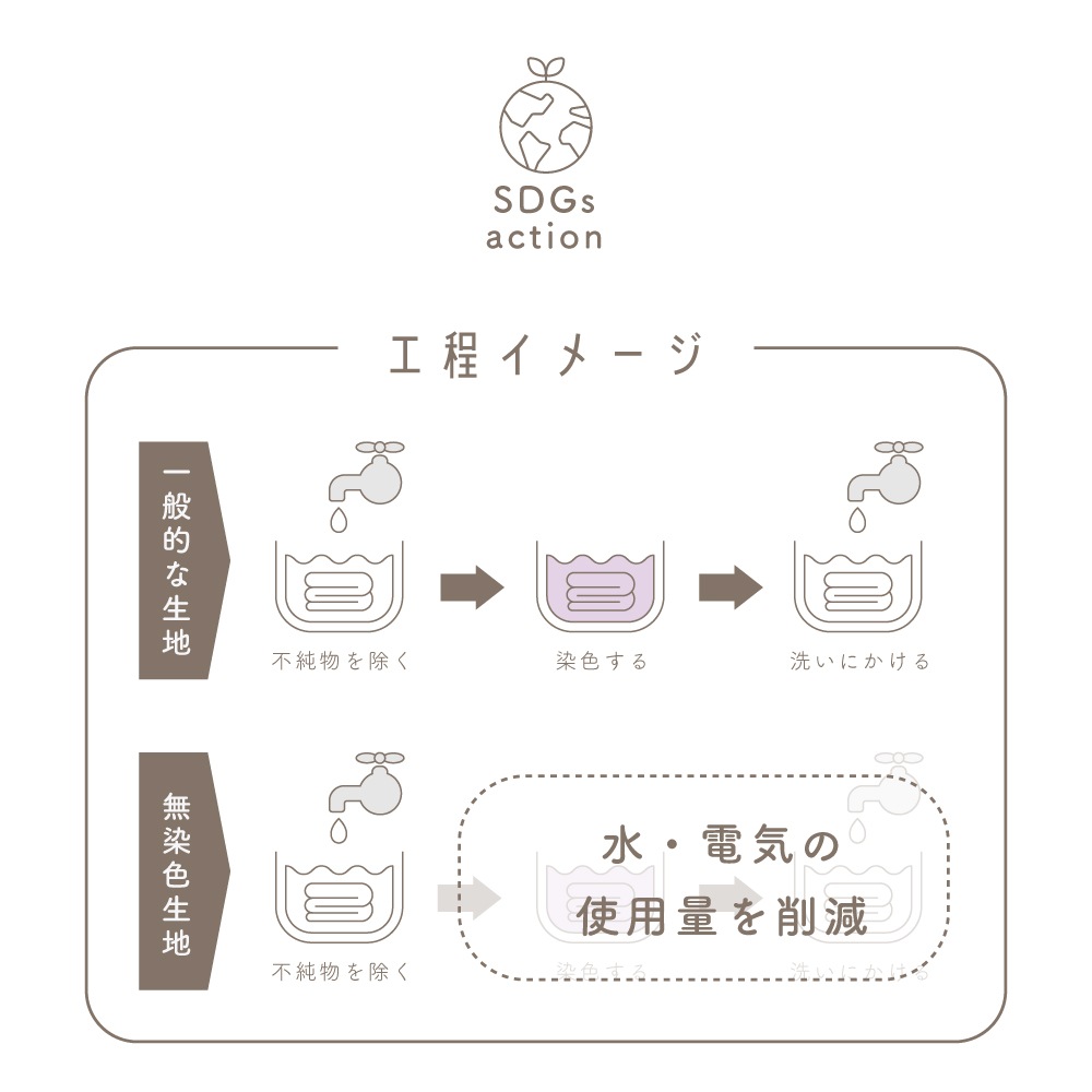 染色工程をなくし、水・電気の使用量を抑えた