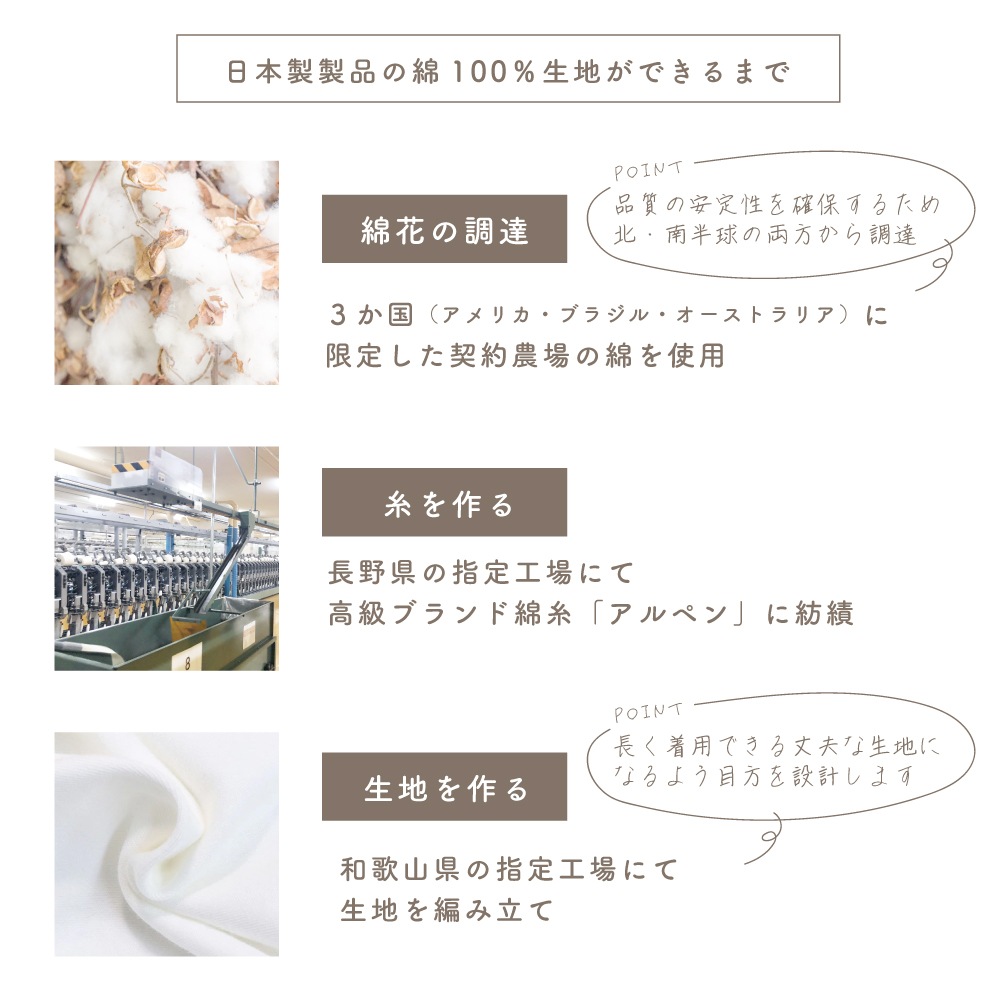 POINT2…肌当たりのいい綿100%素材