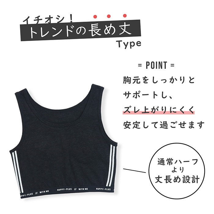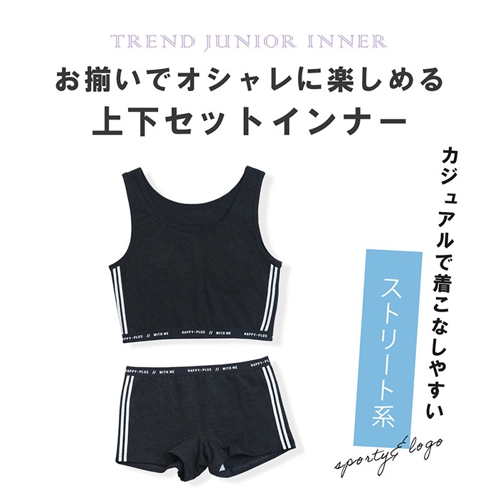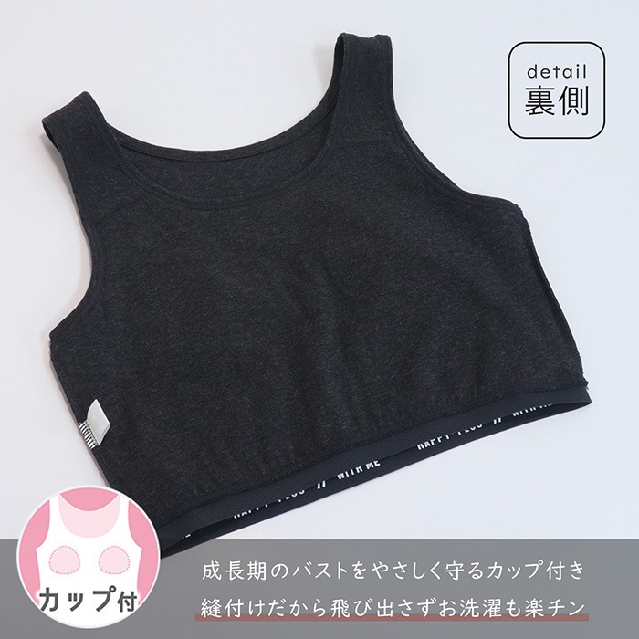 ハーフトップはカップ入りで成長期のバストをやさしく守ります。