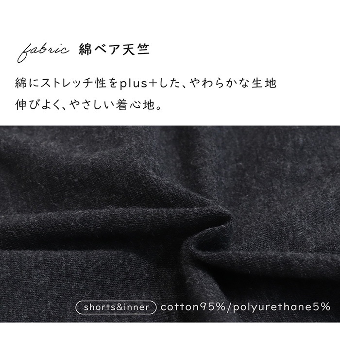 | 組成 | ハーフトップ|綿95%/ポリウレタン5% ショーツ|身生地 綿95%/ポリウレタン5% ゴム部分:ナイロン85%/ポリウレタン15% |