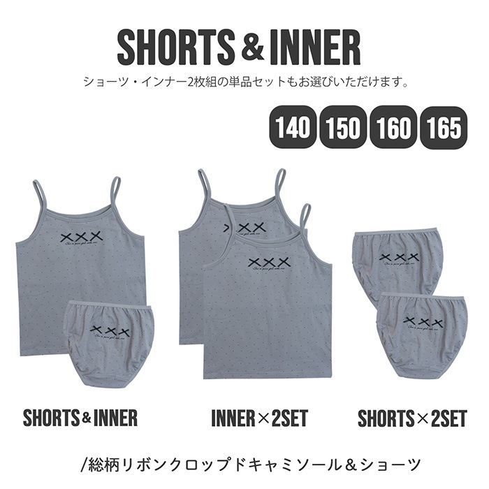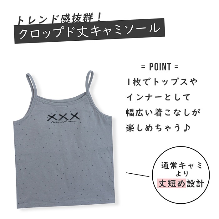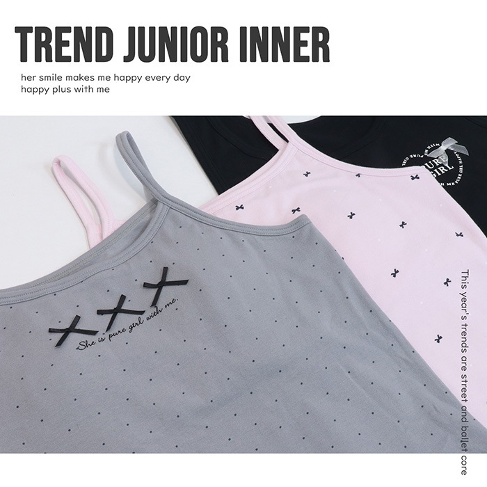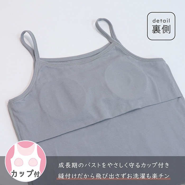 キャミソールはカップ入りで成長期のバストをやさしく守ります。