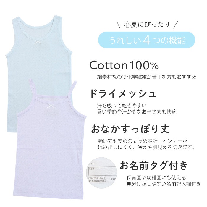 キッズ向けドライメッシュキャミソール