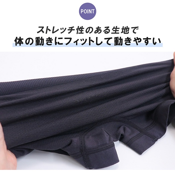 やわらかい肌当たりのストレッチ素材で体の動きにもフィット!