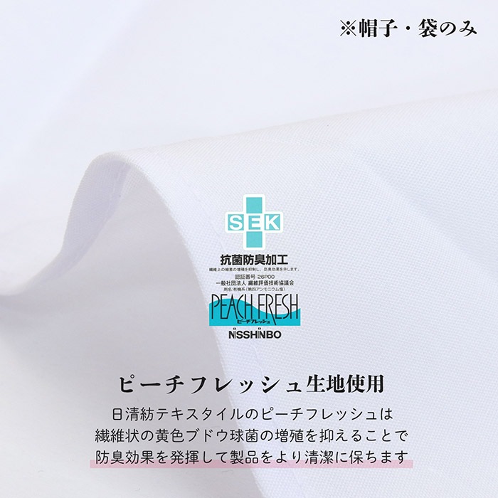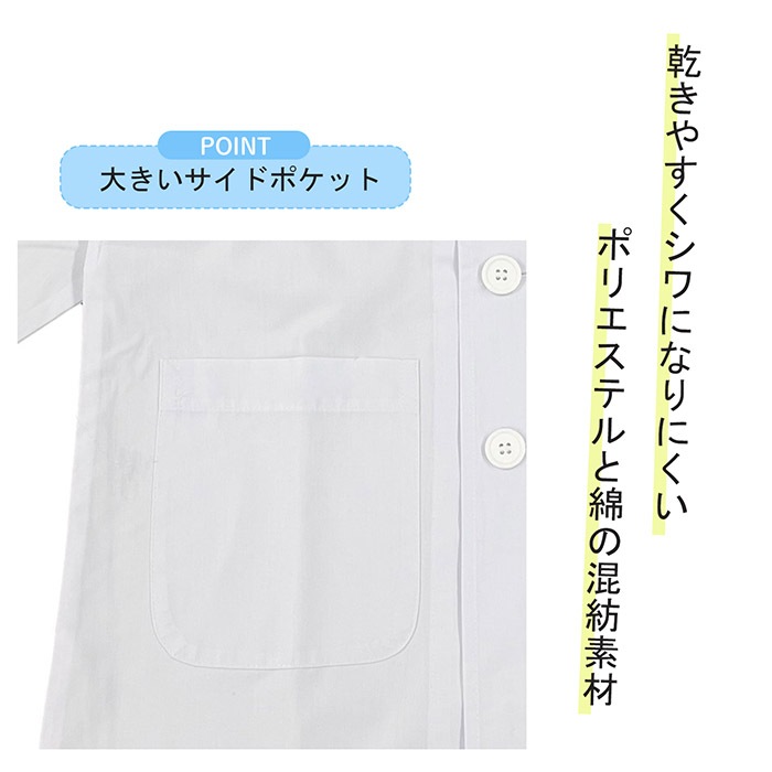 乾きやすくシワになりにくいポリエステルと綿の混紡素材で