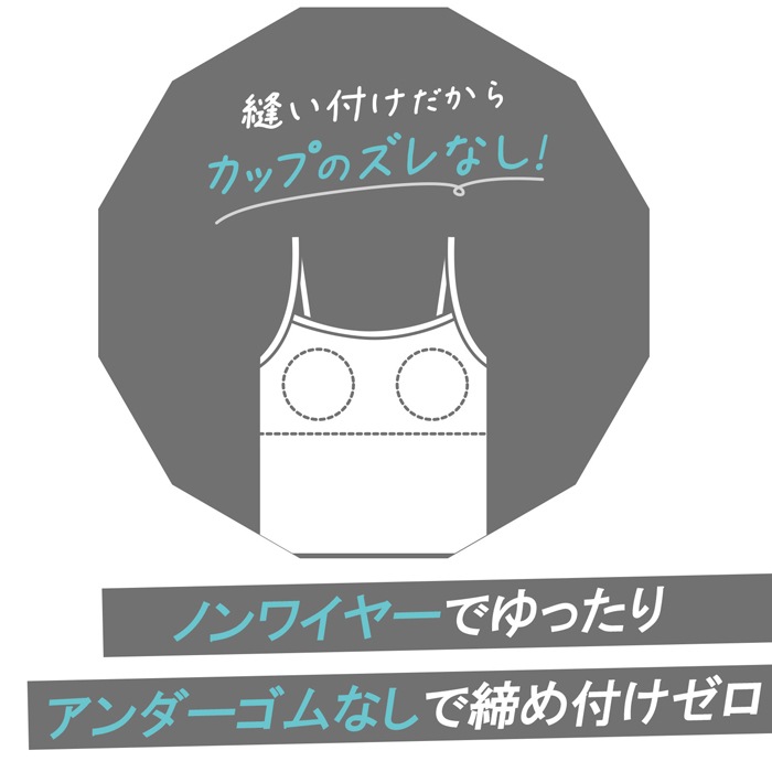 カップ入りで成長期のバストをやさしく守ります。