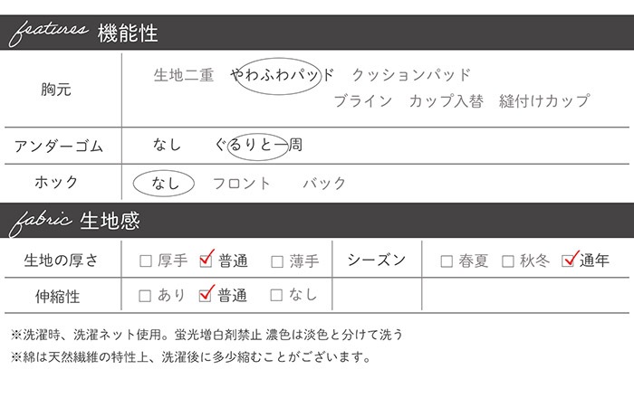 | 組成 | 身生地|綿100% ゴム部分|ポリエステル50%/綿40% ポリウレタン10% |