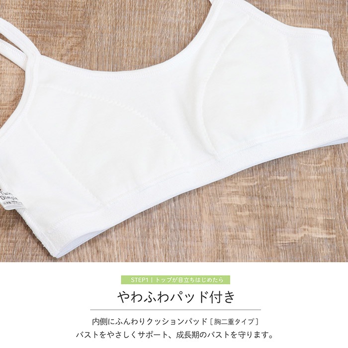 初めてのジュニアブラとしても安心の日本製品質。