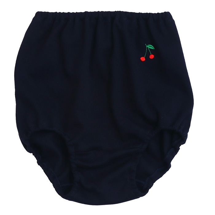 紺無地にかわいらしい、さくらんぼの刺繍入りのワンポイント