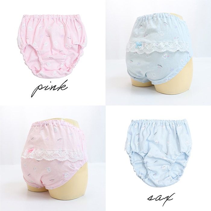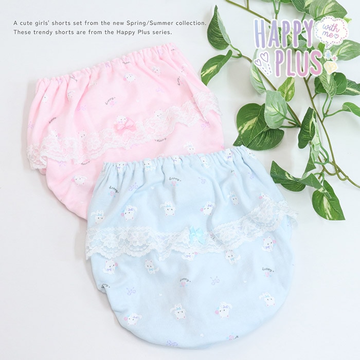 ひらひらレースとリボンのついたキュートな2枚組ショーツ